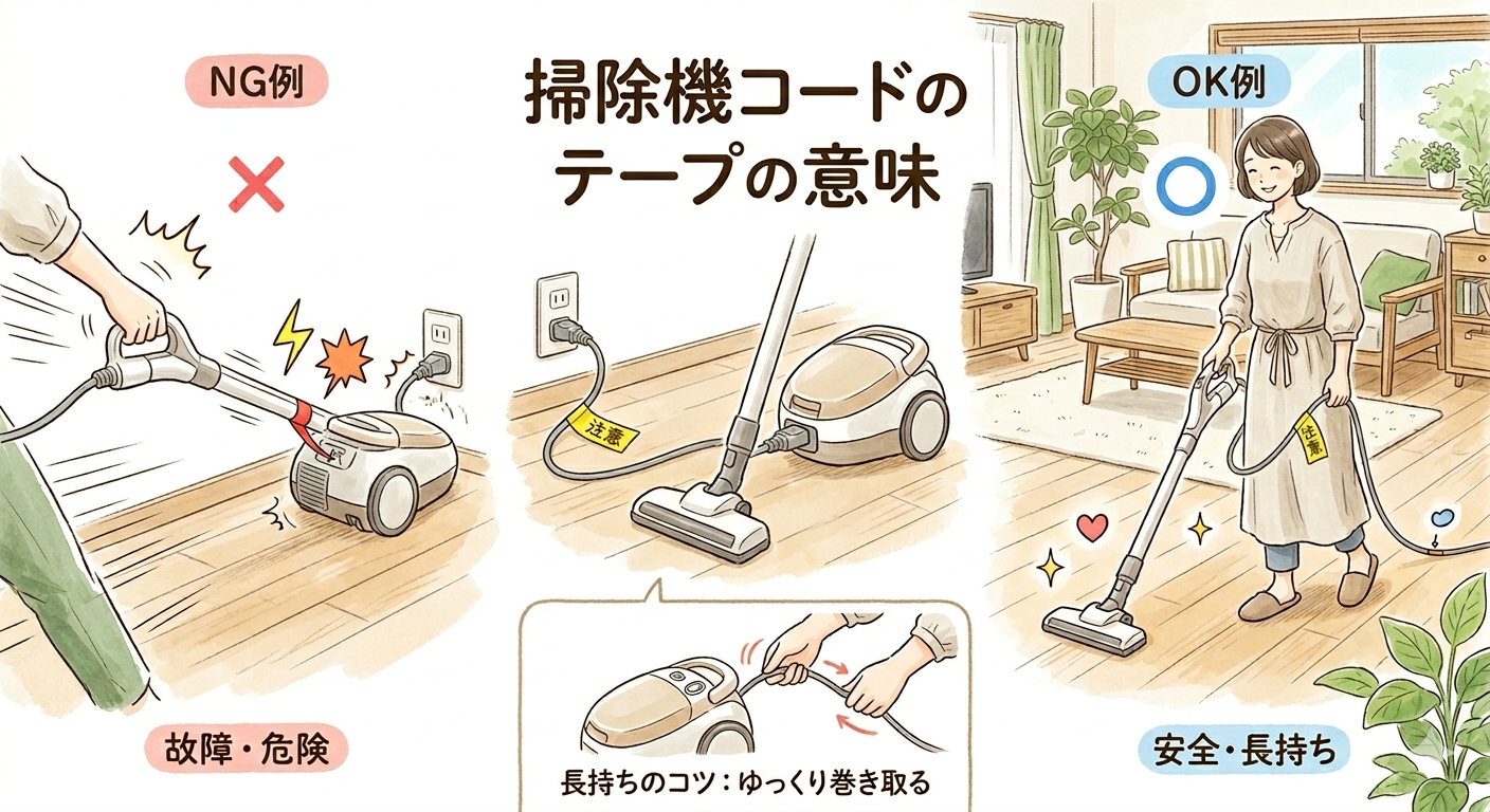 掃除機のコードの黄色と赤のテープの意味とは?知らないと故障の原因に